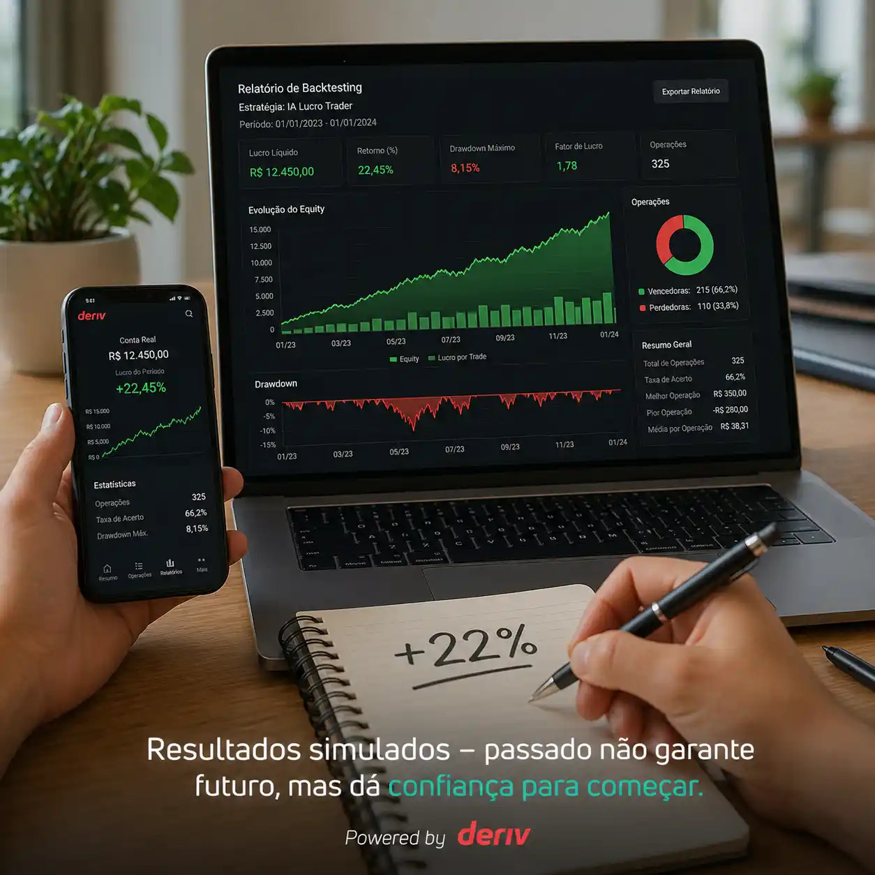 O backtesting de IA não é mágica – é ciência de dados aplicada ao trading. Combinado com uma plataforma de trading automatizado confiável, como a Lucro Trader, e uma corretora sólida (Deriv), você tem em mãos uma ferramenta poderosa para como lucrar com Deriv de maneira mais consistente.